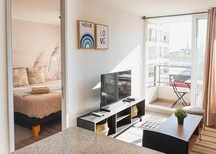 The 30 m² Hom L Wifi, Aa, Piscina, Parking, Gym, Chapadigital Apartment Santiago is located right in the centre of Santiago and offers quick access to the grand Club Hipico de Santiago, which is a mere 5 minutes' walk away. The apartment has a patio with views of the city.